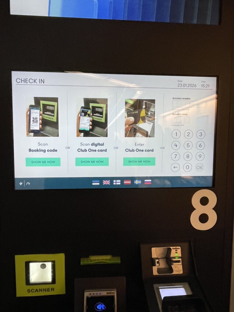 港に到着すると、自動チェックイン機がいくつかあるのでそれを利用してチェックインをします。