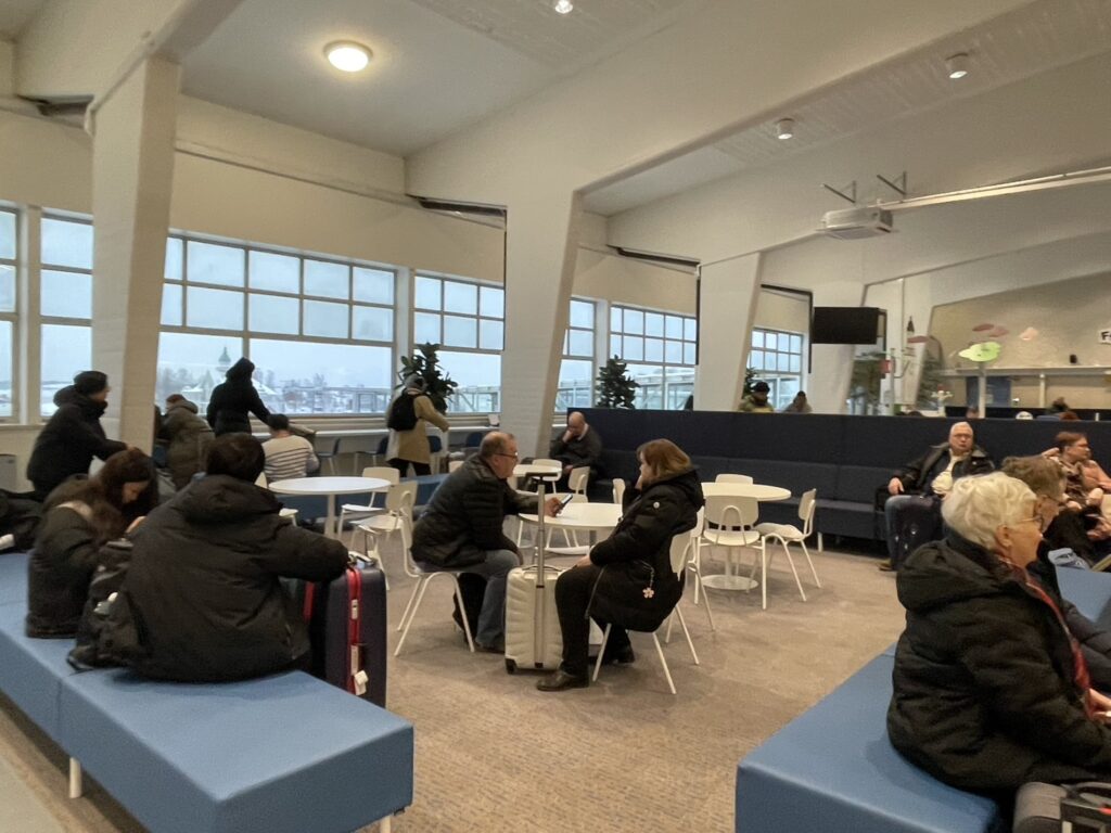フェリーターミナルにはイスやテーブルがいくつかあるので、そこを利用して乗船開始時刻まで待ちます。